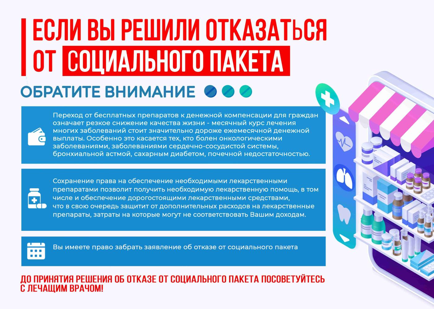 Отказ от набора социальных услуг (НСУ) в пользу компенсации означает, что в случае болезни вы будете покупать лекарства сами. А стоимость современных препаратов может многократно превышать сумму выплаты.