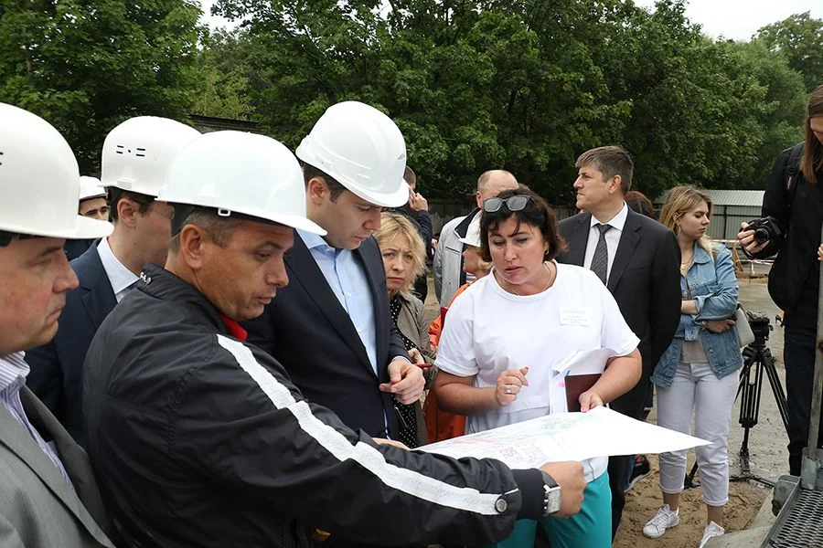 По приезде в больницу на улицу А. Невского Антон Алиханов сразу же отправился на строительную площадку, на которой на месте старого снесенного здания сегодня возводится новый трехэтажный корпус с переходной галереей. По федеральной целевой программе в течение 2017-2018 годов на эти цели будет направлено в общей сложности более 1,2 млрд рублей: 757,2 млн - на строительство, остальные средства – на оснащение.