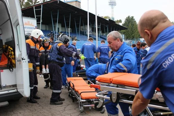 Проведение тактико-специального учения по организации ликвидации медико-санитарных последствий обрушения трибун на стадионе было запланировано в соответствии с планом подготовки медицинских организаций региона к ЧМ-2018.