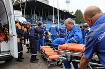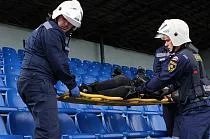 По легенде учений на стадионе, где проходят соревнования, на одной из трибун произошло обрушение конструкций с возгоранием. Пострадали 64 человека, в том числе 12 - тяжело, из которых четверо находились в крайне тяжелом состоянии. В ходе тренировки были отработаны вопросы по организации и управлению, порядку и последовательности перевода медицинских организаций области в режимы повышенной готовности с установленными сроками ограничения; реального выполнения комплекса мероприятий по ликвидации медико-санитарных последствий чрезвычайной ситуации на стадионе, включая оповещение, прибытие всех спасательных служб и оказание первой помощи пострадавшим на догоспитальном этапе.